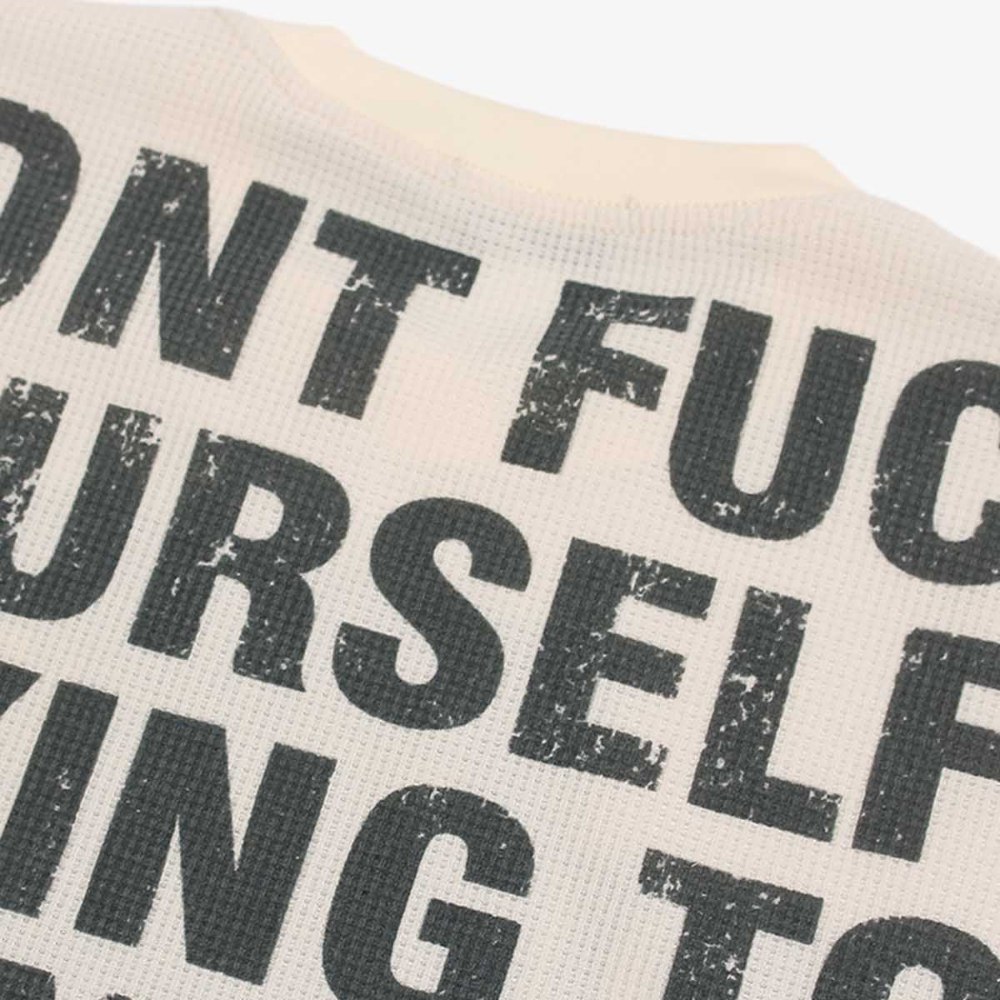 • Design Elements: Bold graphic print with text and image, ribbed cuffs and hem, long sleeves