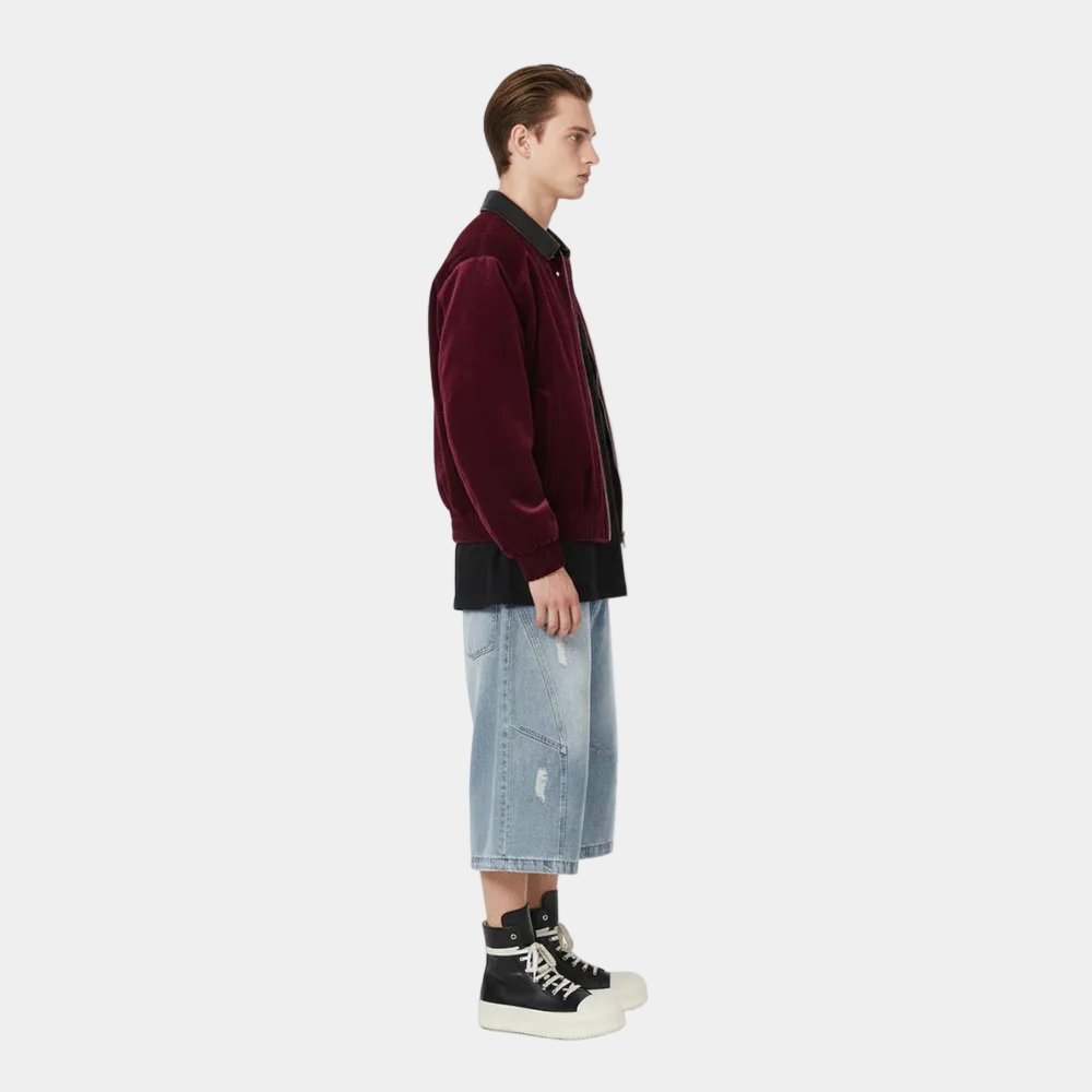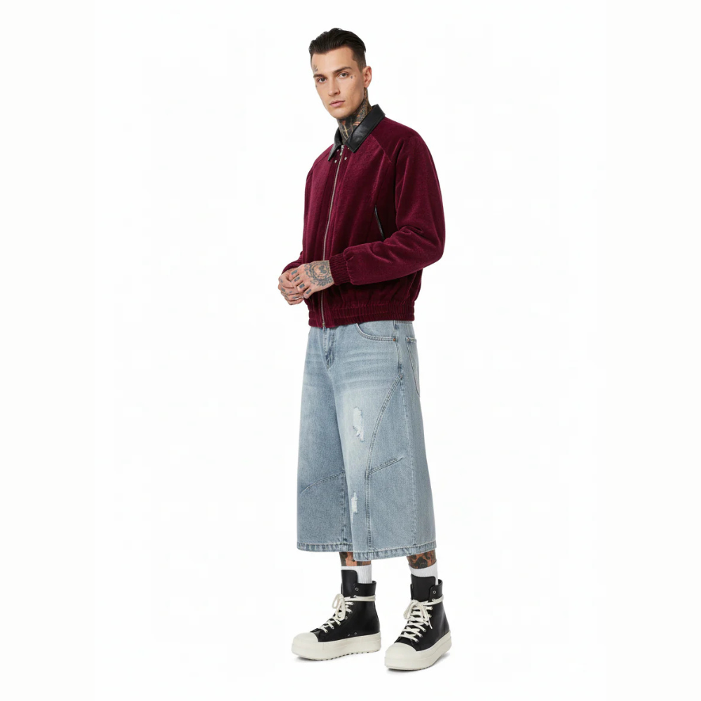 • Design Elements: Zippered arm pockets, ribbed cuffs and hem, leather collar